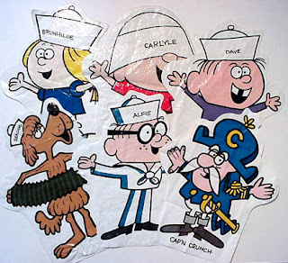 • S.S. Guppy - this ship, which Horatio inherited from his father, Admiral Horatio Crunch Sr, can sail on land at speeds up to 45 mph. This leaves a 10' deep "V"-shaped trench of destruction in its wake. The Guppy is capable of this travel regardless of wind speed or direction. Additionally, Cap'n Crunch can operate the ship without any crewmembers as the vessel responds to his mental commands as long as he is aboard.